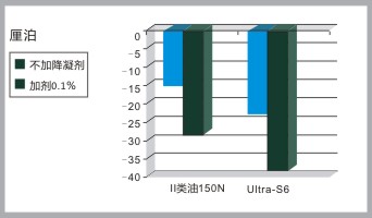 如上圖所示,S-OIL的aramcoULTRA系列對降凝劑的感受性是如此的有效,使得成品潤滑油的傾點與PAO(-40攝氏度)可以媲美。