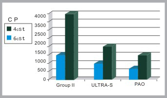 低溫特性 (-25攝氏度下CCS測定數(shù)據(jù)) 由于S-OIL 的aramcoULTRA系列的高粘度指數(shù)使其低溫CCS粘度能與同粘度等級的PAO相媲美。